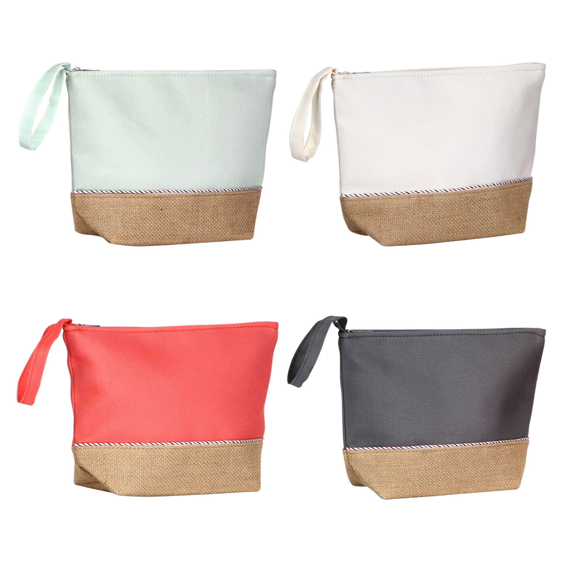 Bolsa multiusos / cosmetiquera fabricada con una combinación de poliéster y yute, lo que le confiere durabilidad y resistencia, con correa para llevarla con mas comodidad, cuenta con un tamaño ideal para almacenar todos tus objetos personales. Medidas: 30.2x20 cm.