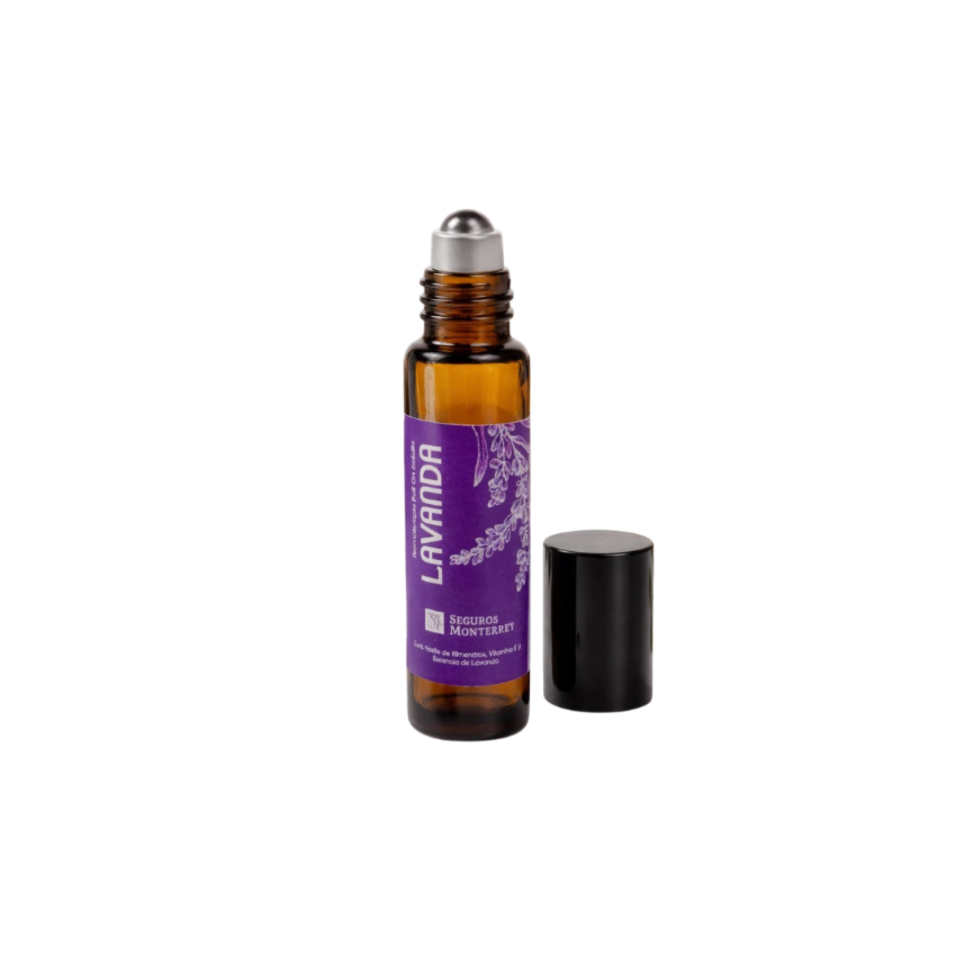 Rollón de bolsillo en envase de vidrio ambas con rollón metálico 10 ml, con aceite de almendras vitamina ey esencia de lavanda, efecto terapéutico, para llevar en tu bolsa. Medidas 10.00 x 1.80 cms