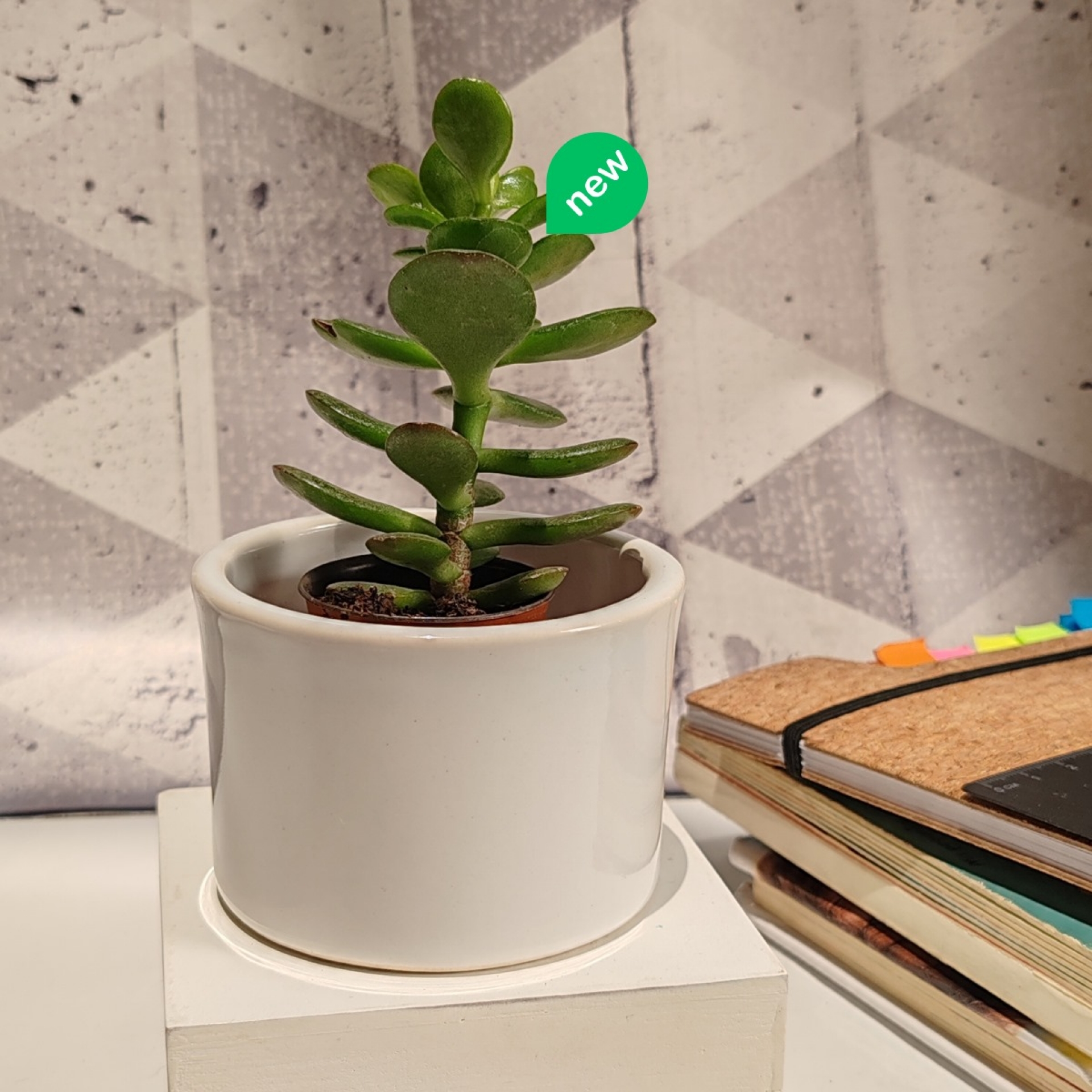 Maceta cilíndrica cerámica con planta viva cactus o suculenta de medida 7.00 diámetro x 6.00 cms en presentación de caja de cartón de 12.00 x 12.00 x 12.00 cms. La impresión se cotiza por aparte.