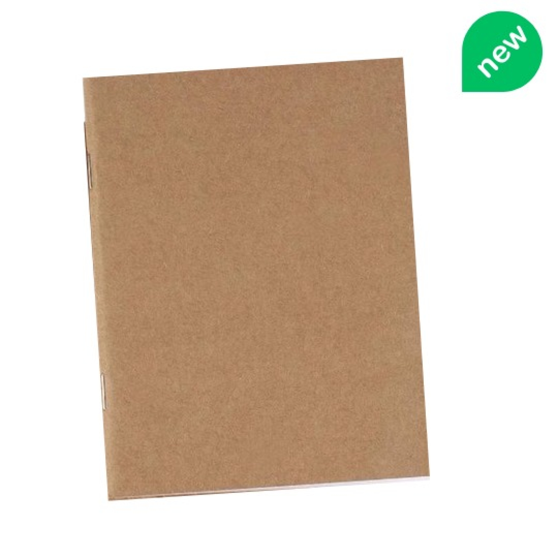 Cuadernillo de papel reciclado con pastas Kraft con 50 hojas interiores de papel reciclado, acabado grapa a caballo de medidas finales 13.50 x 22.00 cms.