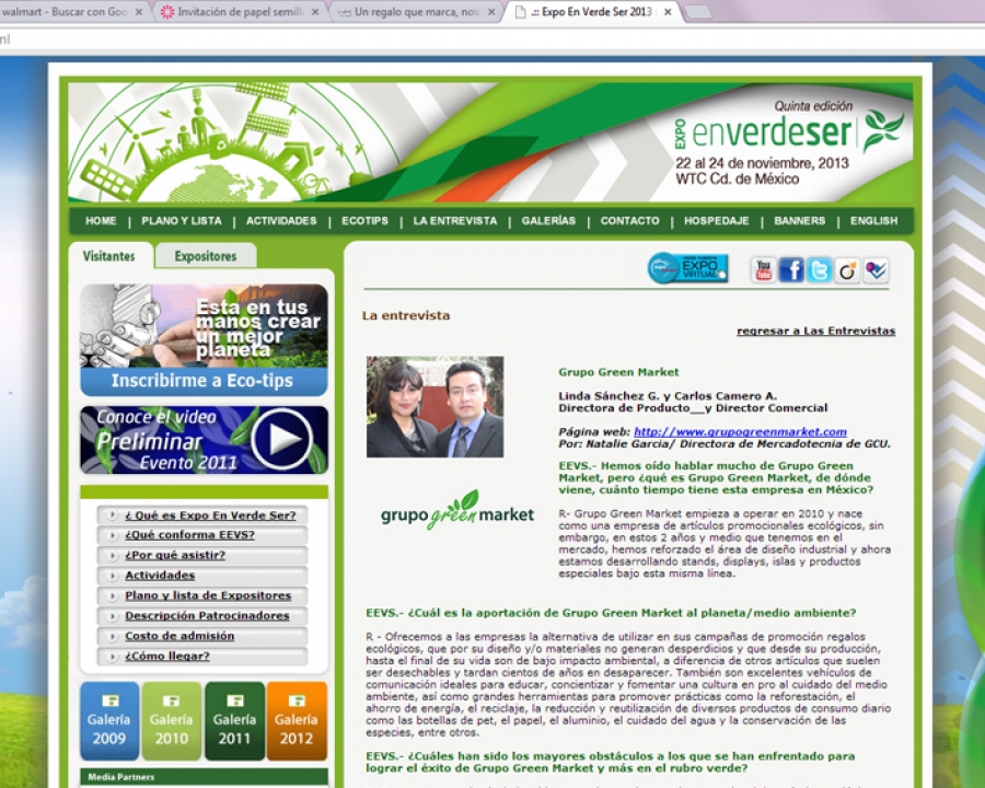 Participación en la Exposición Expo “ENVERDESER 2012” en las instalaciones del WTC México los días 26, 27 y 28 de Octubre.